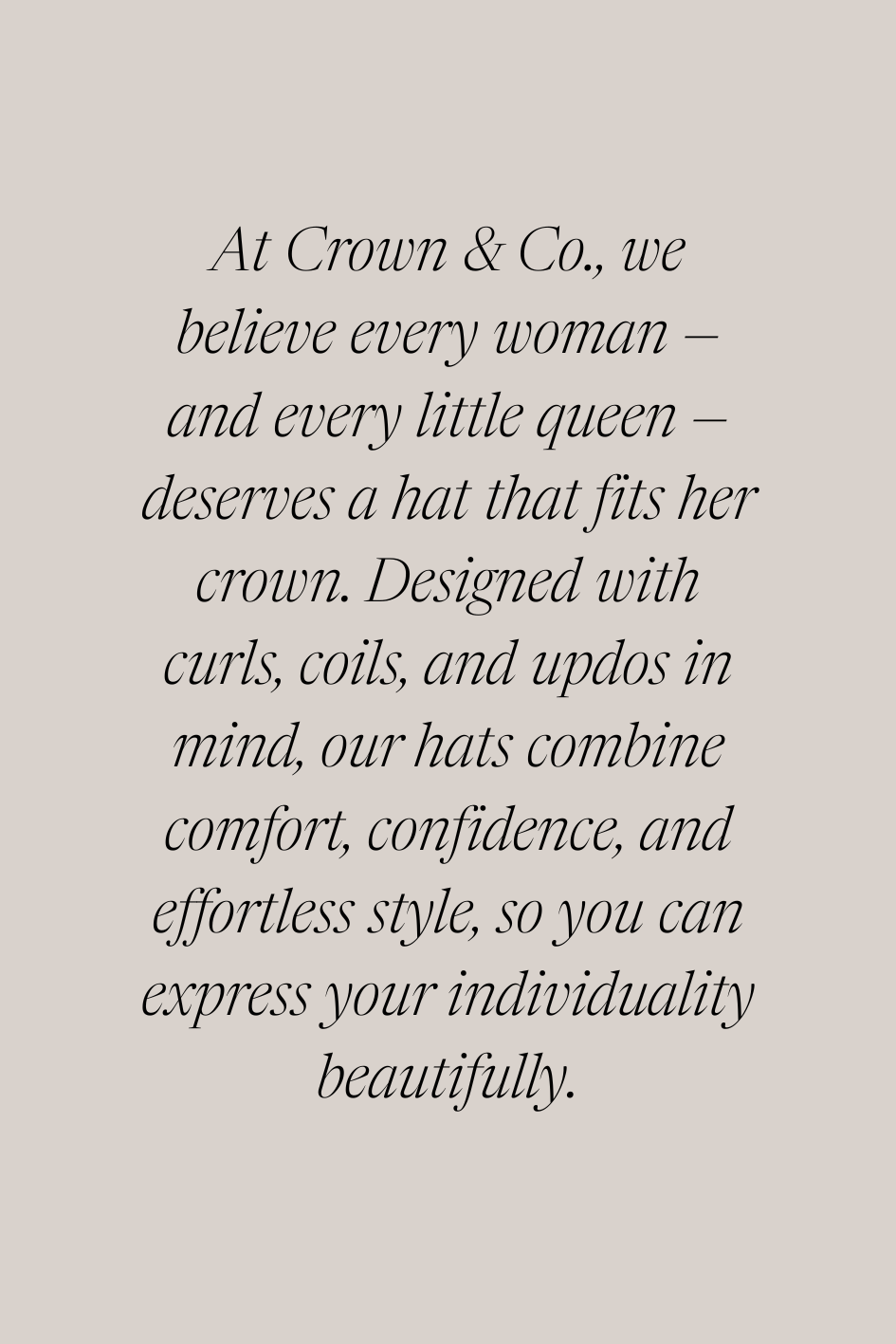 Every hat begins with why — created to celebrate big, beautiful hair with confidence and ease.